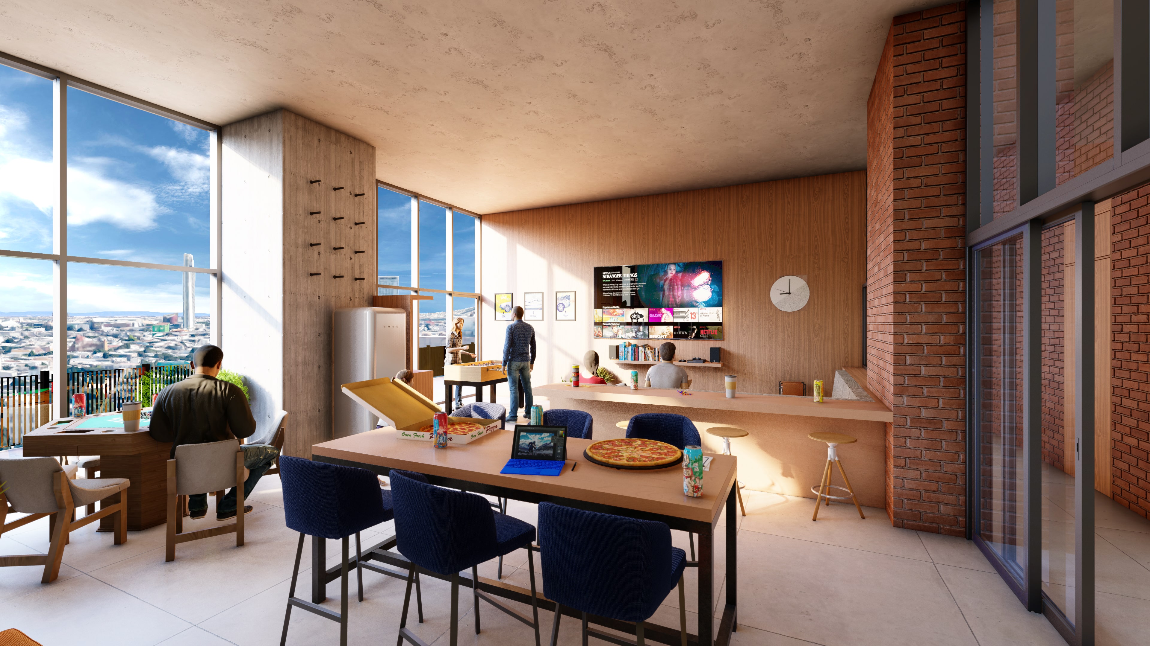 Desarrollo residencial mixto, con dos torres para vivienda y una zona comercial. Ubicado sobre la Avenida Washington, también con acceso por la calle Modesto Arreola. A pocos pasos del centro histórico y la zona turística y cercano a una diversidad de centros de entretenimiento y cultura. Departamentos de 1 y 2 recámaras. Amenidades: Plazoleta y corredor del arte, terreza, alberca, rooftop, gimnasio, cocina gastronómica, cowork, entre otros.